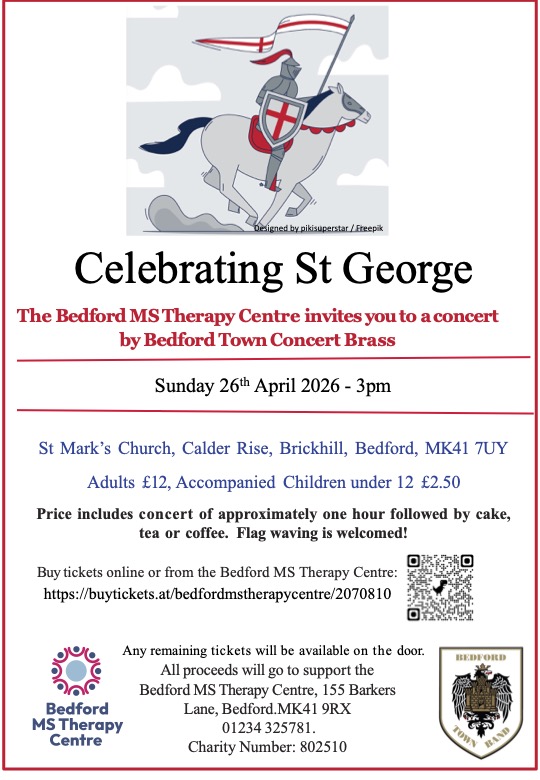 Bedford Town Band Concert Brass will be performing a Charity Concert in aid of The Bedford MS Therapy Centre, on Sunday 26th April 2026, 3pm at St Mark’s Church, Calder Rise, Brickhill, Bedford, MK41 7UY.